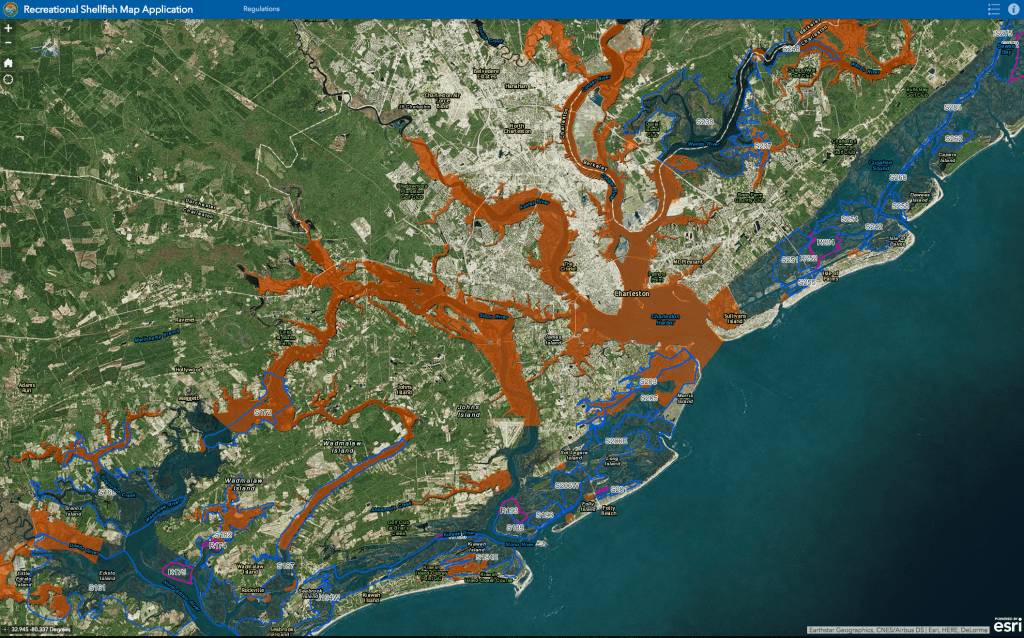 The new SCDNR web app does not show shellfish grounds closed by recent storm events. For the most up-to-date information about shellfish ground closures, always check with SCDHEC by visiting their website or calling (800) 285-1618.
