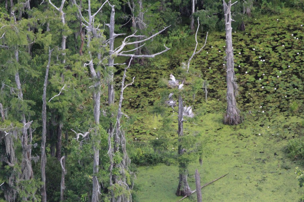 SCDNR pilots and biologists fly at a distance that does not disturb the wood storks they’re studying, using long-range lenses to capture closer-up images. (Photo: Christy Hand/SCDNR)