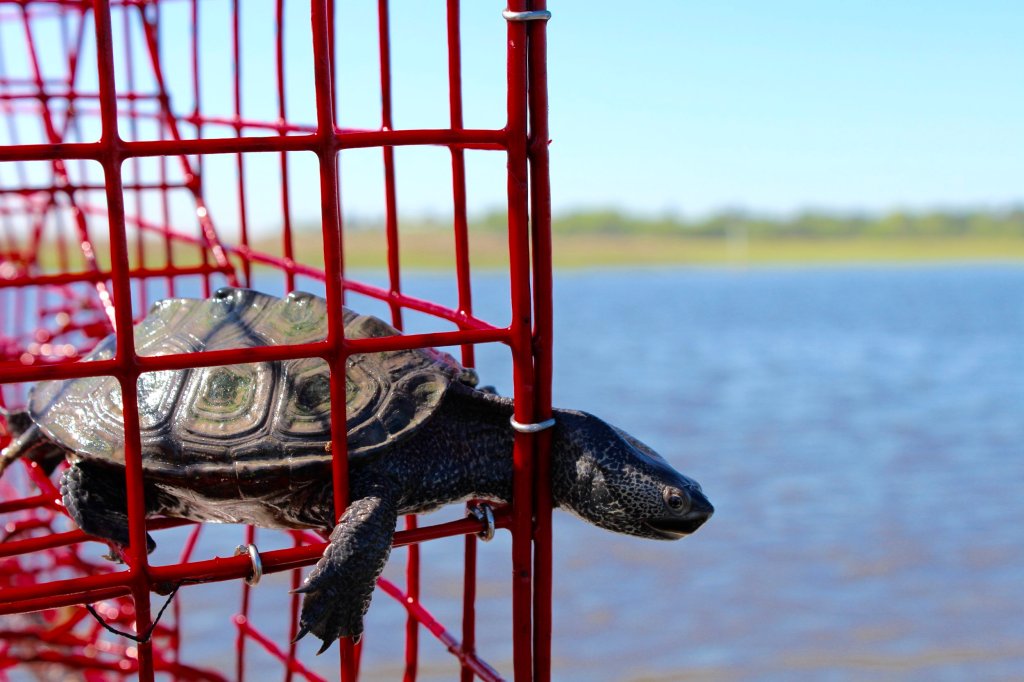 Diamondback terrapins, once popular table fare, are no longer commercially harvested, but their numbers remain in gradual decline across South Carolina due to threats including habitat loss, sea level rise, car collisions, and entrapment in crab pots. Drawn to the pungent smell of fish heads and chicken necks, the turtles frequently enter crab pots. But like all reptiles, diamondback terrapins breathe air – and they can drown when they’re unable to leave the traps.