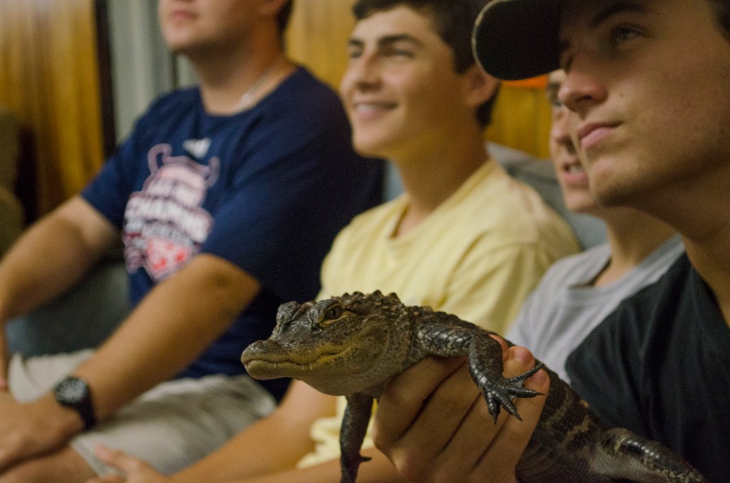 After one night at Kings Mountain, Second Year students piled into two vans and headed to Walhalla Fish Hatchery. There, the group learned about South Carolina’s trout stocking program from a fisheries biologist. Following a lesson on South Carolina’s ecosystems, students held a baby alligator and an albino corn snake.