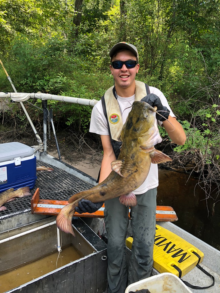 The second half of the summer was mostly devoted to a new study being conducted on the Black River with us assisting lower coastal, Region 4, personnel in their study. We did the standard electrofishing samples to see what species were there and how healthy their populations looked, and we also conducted low-frequency electrofishing runs to look at the catfish populations, with us mainly concerned about the spread of the flathead catfish and its impact on gamefish populations.