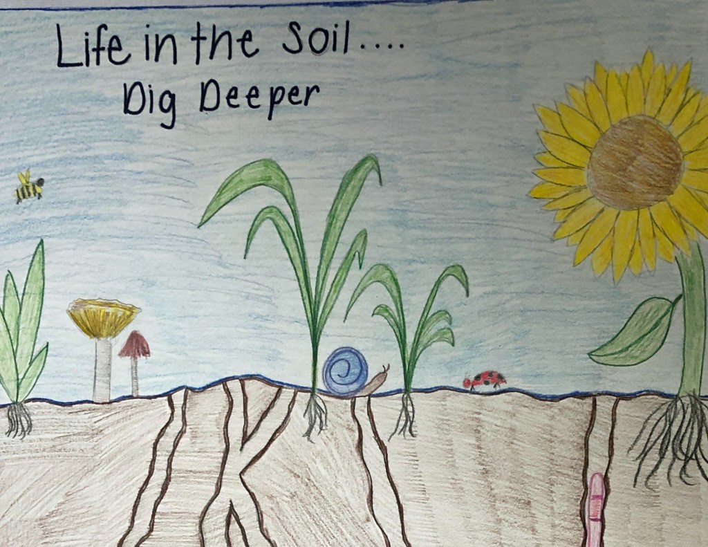 Soil and water essay and poster contests have grown to become long-running traditions in many conservation districts across the state. This year, twenty-three students received awards in the Conservation Poster Contest sponsored by the Richland Soil and Water Conservation District (SWCD). Student posters addressed the topic “Life in the Soil: Dig Deeper,” raising awareness about the importance of healthy soil ecosystems and how humans can protect and promote soil life. Students illustrated this theme in a multitude of ways, from the colorful biology of soil ecosystems to conservation practices such as silt fences which reduce soil erosion on disturbed ground. This year’s participants demonstrated that soil is more than just “dirt,” and that we should take precautionary measures to ensure its health.