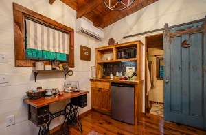 Dee gives her father all the credit for the design and engineering of their two grand treehouses — The Stella Vista and The Bella Luna — that materialized from drawings on a napkin. And later, when it was time to begin work on the interior, she immediately thought of Michael. “I knew I really wanted to have some things custom-built for my place. We came up with a design for my kitchen-area cabinetry and then went together to hand-select the wood.