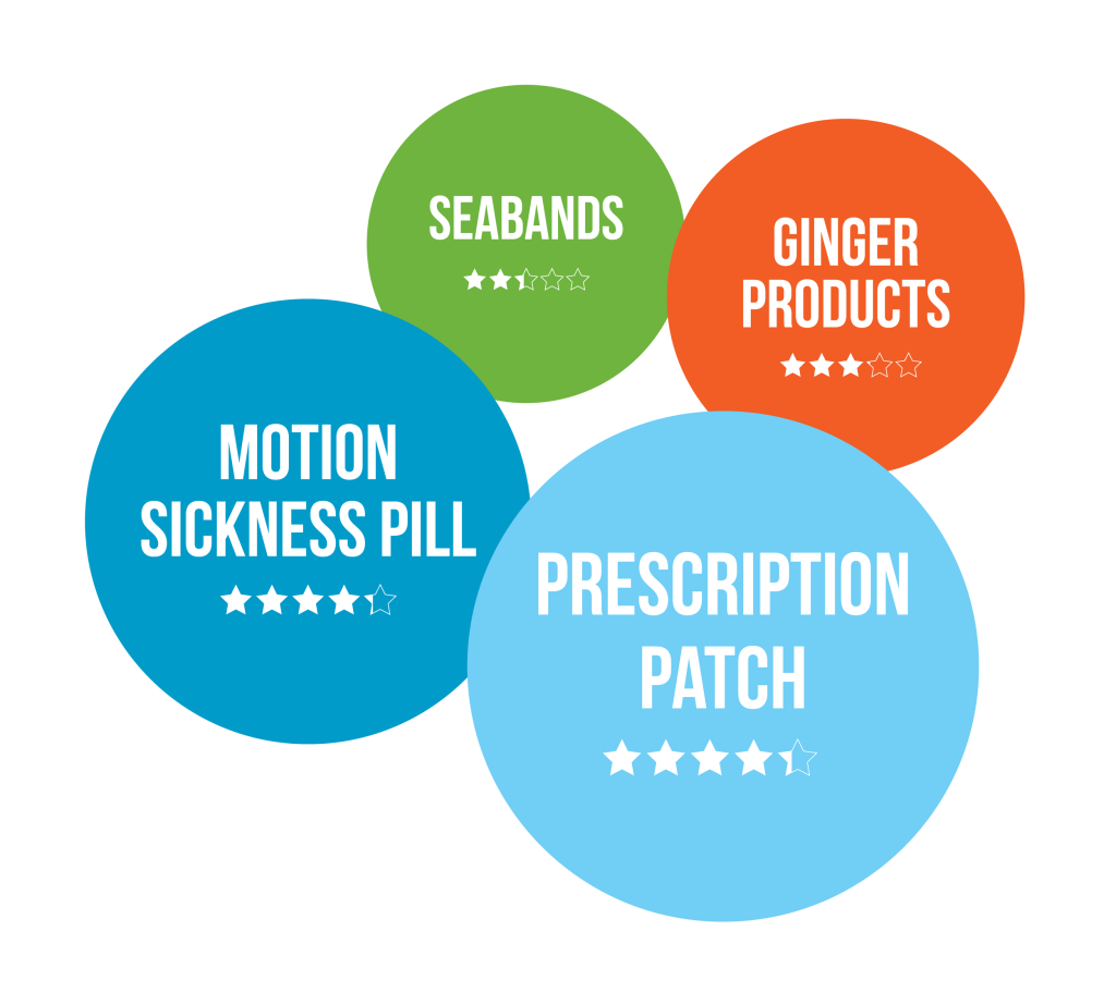 Acupressure – Following the same principles as acupuncture, acupressure is the use of pressure on certain points of the body to address different ailments. Whether you use your own thumb or a commercially made wrist band, steady pressure on the spot three finger-widths below your wrist is said to help manage nausea, including from seasickness.