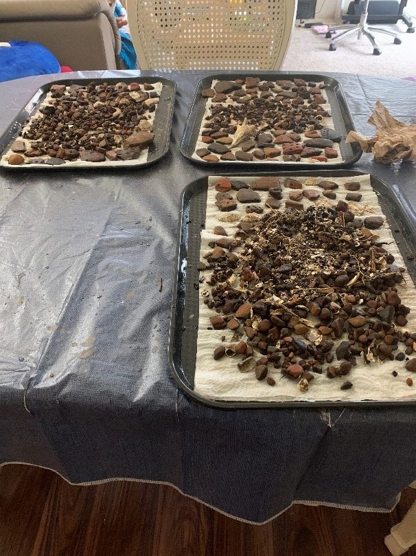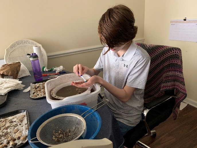 Though working from home is not all rainbows and unicorns, it does have its benefits. One of my favorite things about working from home is that I have the opportunity to share my love of archaeology with my son. Though Gabriel has attended a few excavations, he’s never seen what happens after or really been able to handle and learn about the artifacts because I worked on a secure federal facility for most of my career. I seized the opportunity to teach Gabriel about lab work and artifacts and enlisted his help in washing and sorting the artifacts.