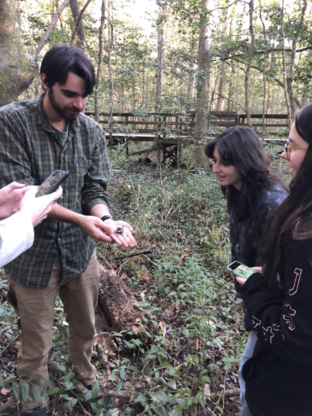 So far, the club has explored various trails within Congaree National Park, while taking proper COVID precautions as the members learn safe herping practices (herping is a term used within the hobby to describe searching for reptile/amphibian species in the wild). Techniques include avoiding the use of bug spray when handling animals and always attempting to “leave no trace” when searching for critters. Matthew Duggan, a junior at USC, says, “Coming into the club, not knowing much about the reptiles that live in our area, Ethan has done an extraordinary job of bringing a valuable learning experience to the USC campus during COVID. Going out into the Congaree swamp with just a couple of ‘herp’ enthusiasts really opens another world to the slimy and scaled creatures that call this environment their home.”