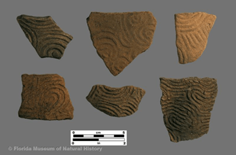 Figure 3: Example of Swift Creek pottery sherds. Image courtesy Florida Museum of Natural History; floridamuseum.ufl.edu/wp-content/uploads/sites/34/2017/03/540cb0d90005909cd02582955f9bc185_f3434.jpg