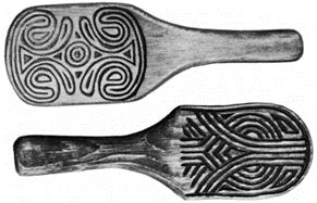 Figure 1: Modern examples of Carved Paddles that would be used to produce Swift Creek designs. Source: Project Gutenberg’s Ocmulgee National Monument, G.D. Pope