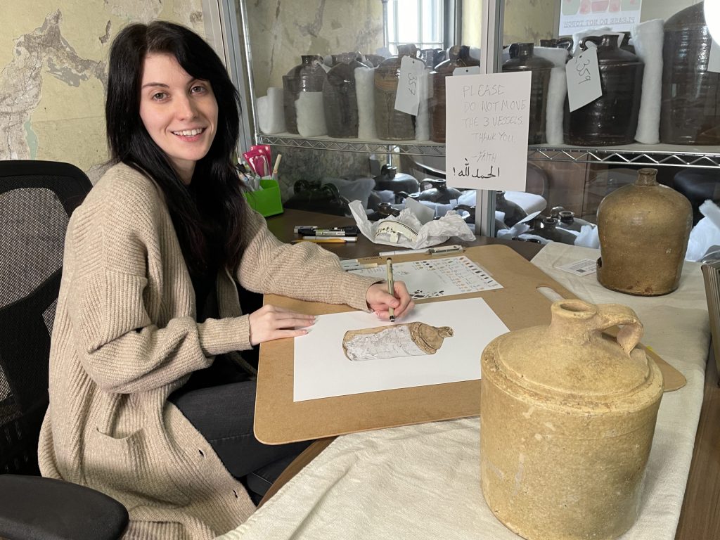 Though I have my B.A. in Studio Arts and have drawn still-lifes many a time in my art training, the Edgefield Pottery Project is unlike any art project I have ever had. For the first time, I’m being asked to incorporate my knowledge of archaeology and anthropology into my art as an undergraduate anthropology student at the University of South Carolina (USC). In this way, the art is less about stylistic interpretation and instead the focus is hyper-realistic accuracy to highlight features of the vessels that otherwise do not photograph well. Meditatively scanning for every detail as I draw these vessels feels akin to drafting a map as I work to mentally triangulate shapes in relation to one another in space on the surface of the pottery. Thinking about things that way, I’m often reminded of seeing maps of our state and how little modern boundaries in place truly capture the range and scope of history South Carolina has witnessed. Places like Columbia might currently be significant as the state capitol, but I hope what my artwork conveys is just how important Edgefield was for pottery production and why these vessels are a significant as a form of industry. I am honored to take on this work as a USC student and hope it will give visitors to future SCDNR Edgefield pottery traveling exhibits pause and reflection about the quiet details that all work together to create history.