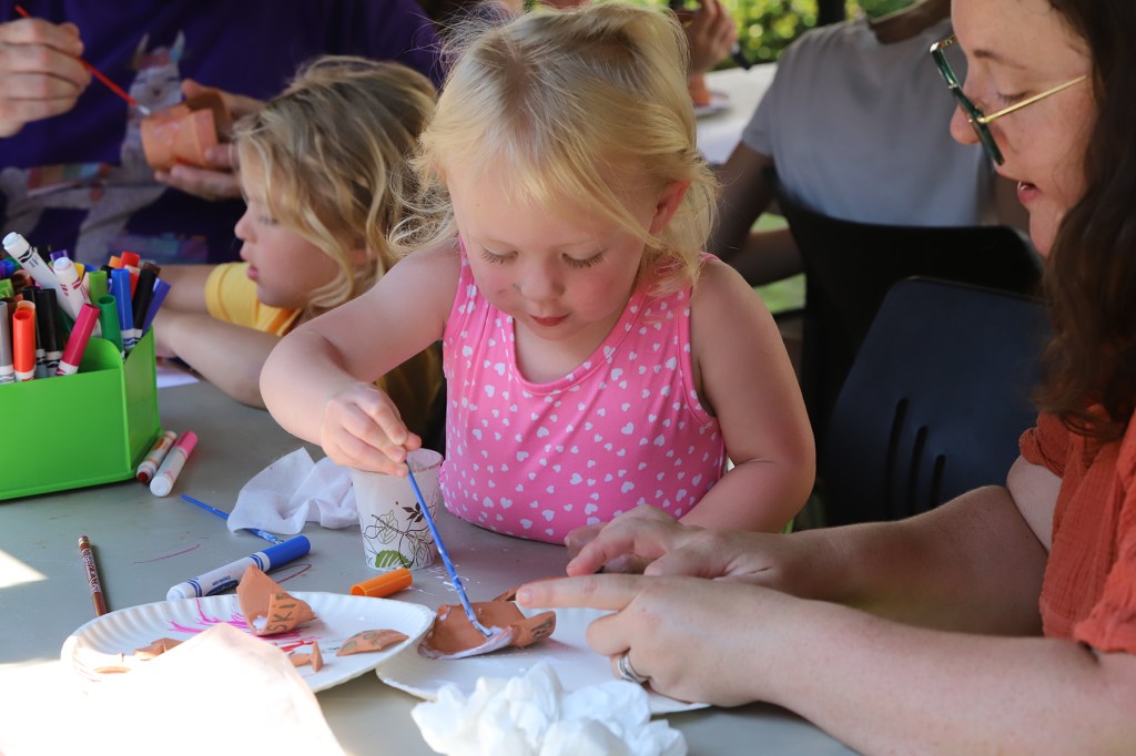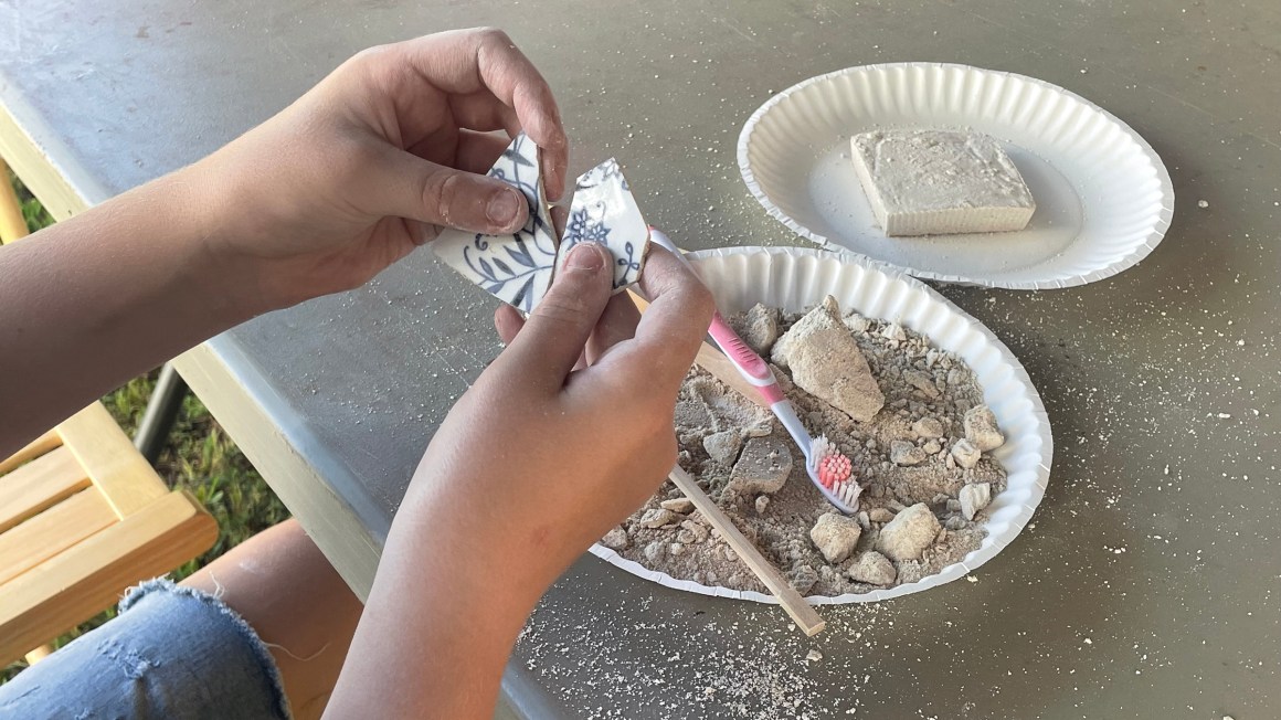 Furthermore, I also volunteered one day to participate in the agency’s engagement program for children in which we handed out mini excavation units. These units consisted of crumbly plaster blocks with one or two sherds of pottery inside. It was wonderful to work with the children as they (somewhat) carefully dug away at the plaster and pulled out sherds. From there, we encouraged them to imagine how the different pieces might have fit together and what kind of vessel it may have come from. This activity sparked a lot of questions as well as excitement, and it was wonderful to be able to see the parents and guardians light up just as much as the kids! I was especially exhilarated by how the kids would theorize whether or not they had discovered a piece of a bowl or cup.