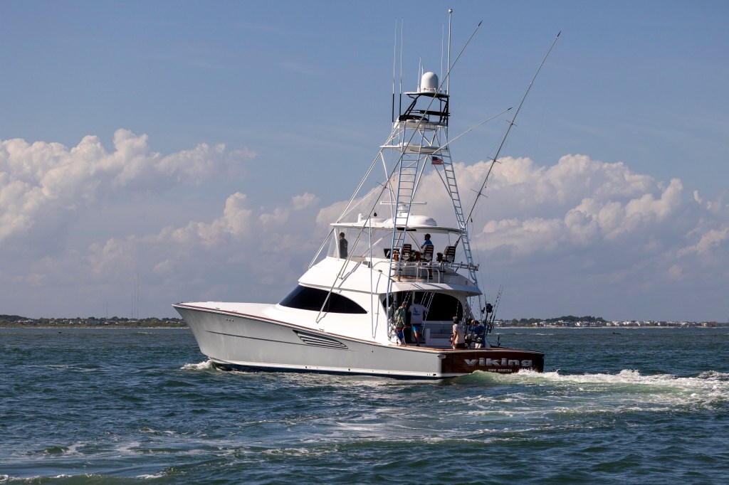 As lines came out of the water on Day 1 of the tournament, Viking 74 sat atop the fleet in first place based on time. Bench Mark, a 57-foot Spencer owned by Stephen Davis and captained by Jordan Parker, held second with the same number of points. Claytime, a 60-foot B&D owned by Jon Clay with Capt. Phillip Fender at the helm, was just 200 points behind them for third.