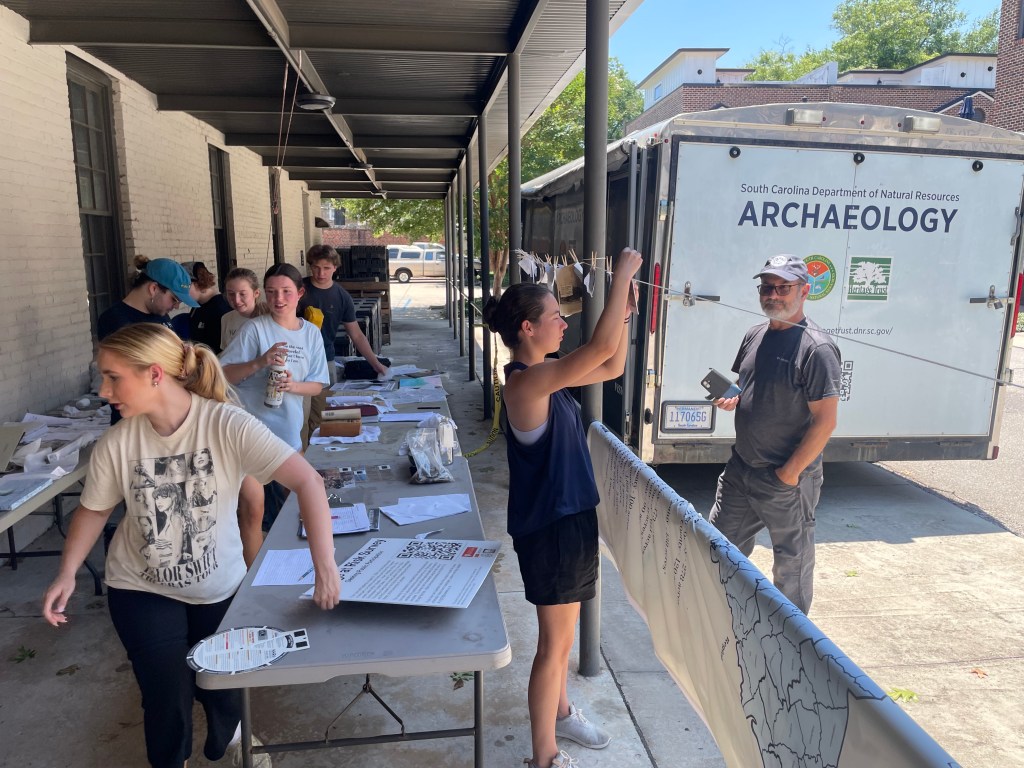 During the summer of 2025, interns took part in a simulated disaster training with SCDNR’s Cultural Heritage Trust Program (Archaeology team). During the training, interns had to develop a disaster response plan using what we learned in lectures and by using some provided disaster recovery supplies. Objects, simulating cultural resources such as artifacts, documents, and photographs were scattered about and damaged in a mock flood. In all of this, the interns had to figure out which objects to prioritize for recovery in a limited amount of time. Interns were constantly challenged during this exercise and often had to adapt original planning in order to effectively secure and preserve artifacts. By the end of the training interns had learned a lot about what did and did not work. I interviewed some of the interns and their SCDNR archaeology supervisors to see what they had to say about the training.