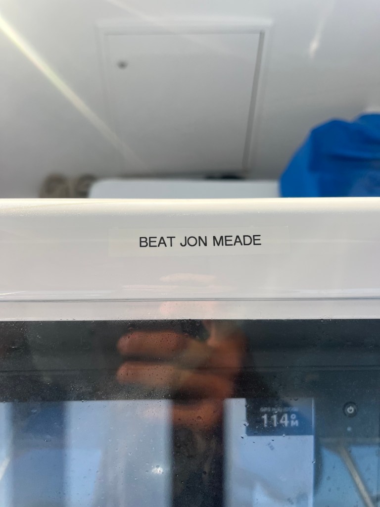 A week or so before the Edisto tournament, Michael was running a trip while fishing alongside Meade. The two were going fish for fish. In need of an encouraging mantra, Michael asked mate Will Silcox to bring him the label maker. Utterly confused, Silcox delivered the machine. Michael then began typing a message to himself. As the newly minted label emerged, it read, “Beat Jon Meade.” He stuck it to the console and sent Meade a picture of it.
